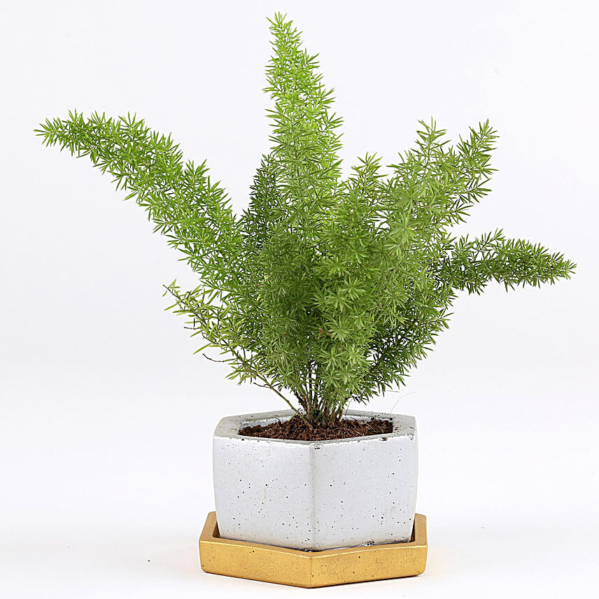 Buy Send Foxtail Asparagus Fern In Hexafun Concrete Pot Online Fnp